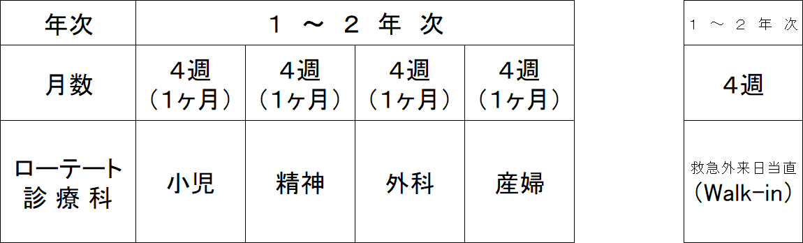 - 内科、救急、麻酔科、小児科、精神科、外科、産婦人科、地域医療、一般外来および在宅医療を必修で経験する。